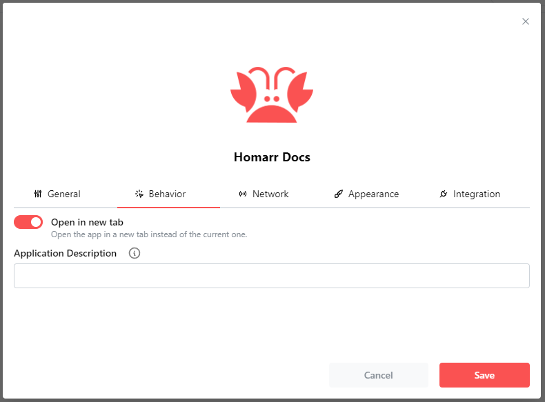 By default, Homarr will open the app in a new tab when you click on it. If you dislike this behavior, you can disable it here.