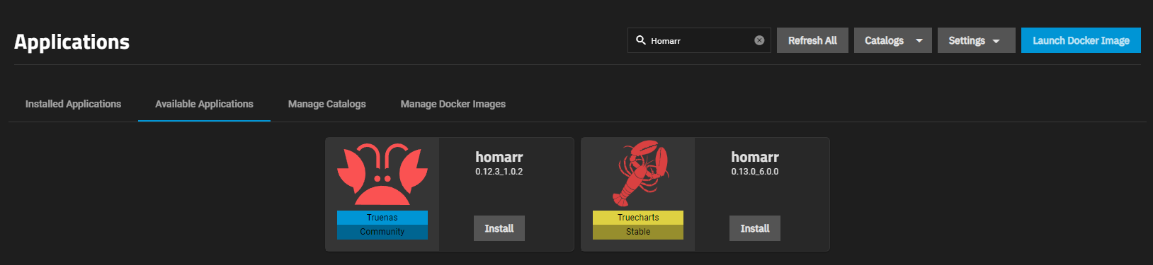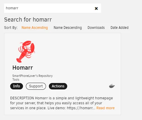 - Search for "Homarr" and click on the result.